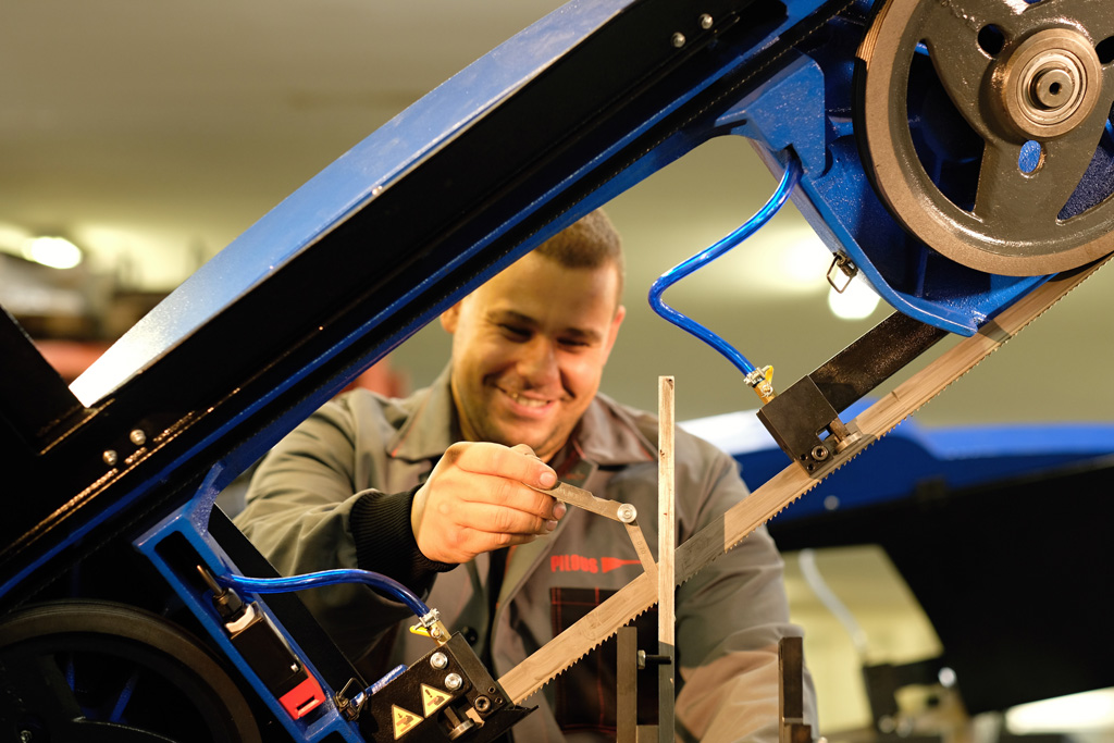 Firma Pilous hat in mehr als 30 Jahren ihres Bestehens Tausende von Sägen verschiedener Typen hergestellt. Die Besitzer gehen unterschiedlich mit den Maschinen um – manche sind unter Spänen verborgen, andere sehen aus, als hätten sie gerade das Werk verlassen. Beide Gruppen benötigen jedoch regelmäßige Wartung. Ein Vorteil der Pilous‑Maschinen ist die Verfügbarkeit von Ersatzteilen auch nach dreißig Jahren. In unserem Werk überholen wir regelmäßig Maschinen, die 25 oder 30 Jahre alt sind. In diesem Artikel konzentrieren wir uns auf die Einstellung der Maschine und beschreiben die Faktoren, die die Schnittgeradheit beeinflussen.
