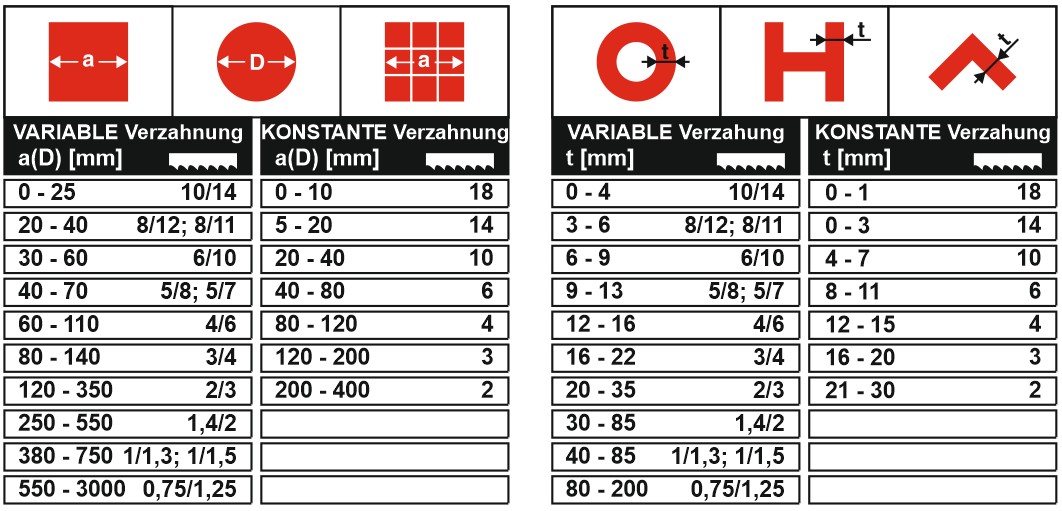 Berücksichtigen Sie die Wandstärke des Materials – grundsätzlich gilt: Je dünner die Wand, desto feiner sollte das Zahnprofil sein. Für Massivmaterialien ist hingegen ein groberes Zahnprofil geeignet.