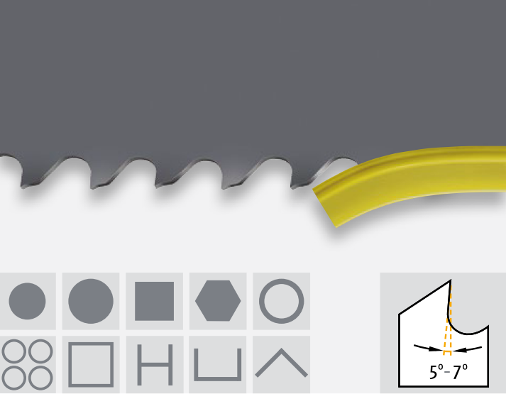 tooth tips made of HSS M51 1.3207 ● the pro with particularly wear-resistant teeth ● for sawing processes using minimal lubrication ● powerful at high cutting speeds and feeds.