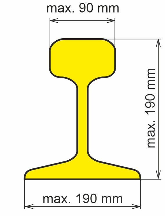 | Max. rozměr kolejnice | 190/90 x 190 mm |