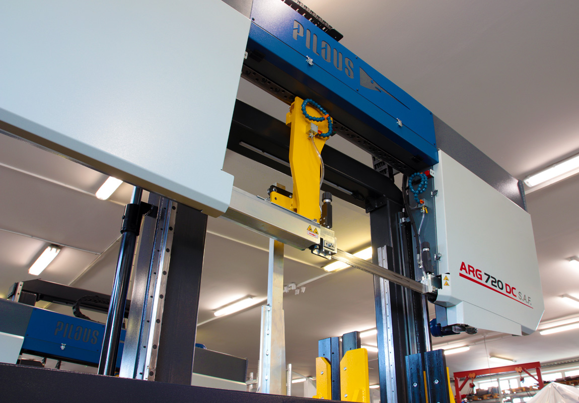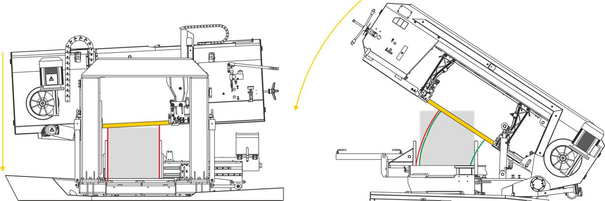 Двухколонные ленточные пилы представляют собой конструктивное решение, ориентированное прежде всего на устранение вибраций и максимизацию точности. Рычаг, направляемый по двум параллельным колоннам, движется по точной линейной траектории, желательно по линейному направляющему устройству практически без люфтов. Двустороннее опирание рычага минимизирует механические колебания и обеспечивает равномерное распределение нагрузки на пильную ленту по всей ширине режущего канала на протяжении всего реза.