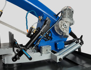 Высокие показатели производительности достигаются также вследствие использования частотного регулирования приводом вращения пилы, что позволяет плавно регулировать скорость резания от 15 до 90 м/мин, что также многократно увеличивает точность реза и стойкость ленточной пилы. Эргономичная компактная тумба позволяет установить станок на площади с ограниченным пространством.